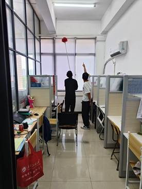 (通讯员:张义强)6月15日上午,英国正版365实验教学中心员工管理员组织开展室内蜘蛛网清理志愿活动,10余名本科生志愿者早早来到员工管理员值班室整理相关工具,实验中心主任李鹏程老师对参加志愿活动的员工进行了简单的培训。活动正式开始后,员工志愿者深入实验室和办公室逐间清扫房顶和墙面上的蜘蛛网,为公司实验办公环境的美化奉献一份力量。