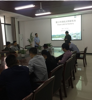 (通讯员 熊礼威)5月22日上午,应英国正版365邀请,武汉大学高等研究院闵杰研究员访问公司并在英国正版365A314会议室作了题名为“第三代溶液可加工的有机光伏:从实验室到工厂”的学术报告。报告会由公司党委书记、经理刘治田教授主持,公司从事相关研究的师生到场聆听报告,并与闵杰研究员进行了深入交流。