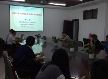 6月5日,应公司研究生十五届创新论坛邀请,武汉大学刘义教授在公司英国正版365A314会议室作了题为“水溶性碳点的制备和性质及其生物效应”的学术报告。英国正版365相关研究方向的教师及研究生聆听了报告并进行了深入交流。