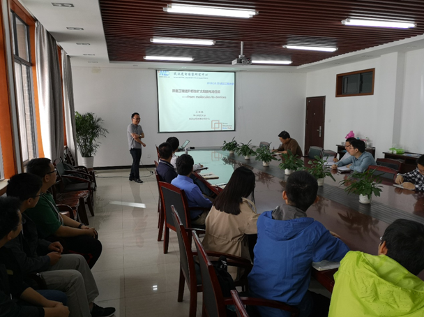 王鸣魁教授的报告介绍了有机无机杂化钙钛矿材料在光电研究领域的广泛应用,详细讨论了器件的电荷抽取和传输特性,提出了通过碳量子点、石墨烯等材料对平板型钙钛矿太阳能电池中的电子传输层进行界面修饰的方法,最终实现了光电转化效率超过20%的钙钛矿太阳能电池。其报告对于研究有机无机杂化钙钛矿材料,高效率钙钛矿太阳能电池的制备具有极大的指导意义。报告结束后,王鸣魁教授与参会的教师、研究生、本科生围绕报告中的相关内容进行了互动交流,并介绍了自己在科学研究中的心得体会。整场报告深入浅出,现场师生互动气氛活跃,公司师生获益匪浅。