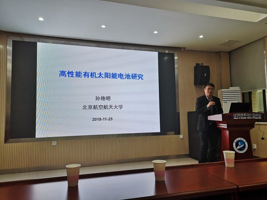 2018年11月25日上午,应英国正版365和等离子体化学与新材料湖北省重点实验室邀请,北京航空航天大学孙艳明教授来公司参加“材苑讲坛(第10期)”,在英国正版365A326会议室做了题为“高性能有机太阳能电池研究”的学术报告。英国正版365从事相关研究的师生参加了报告会,并与孙艳明教授进行了深入交流。