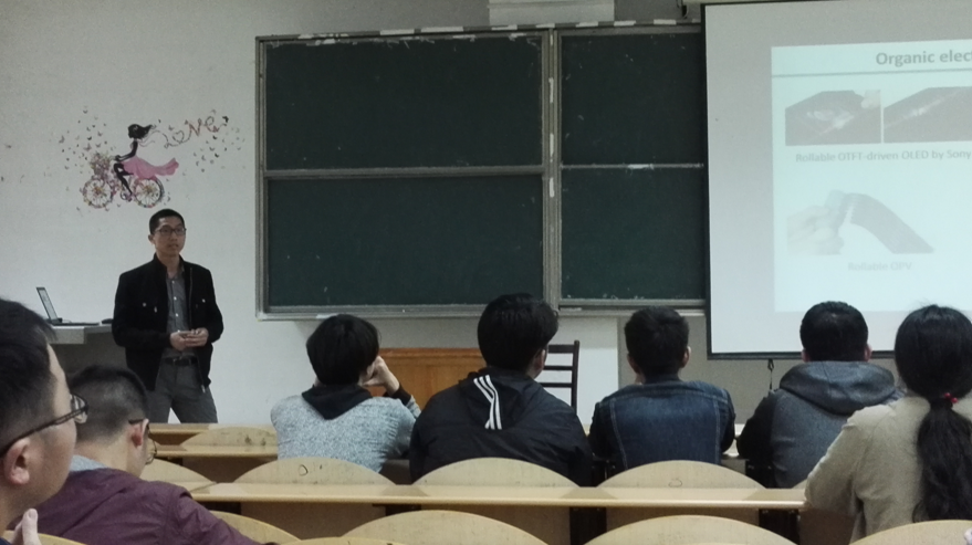报告中,王成亮教授针对听众多为本科生的情况,从有机共轭材料相关的基础知识开题,细致的介绍了其在用于晶体管和有机电池制备中的优点,为同学们普及了晶体管结构和制备方法的相关知识,其中着重说明了影响晶体管性能的几个结构参数以及如何调控这些参数从而获得性能优异的晶体管。