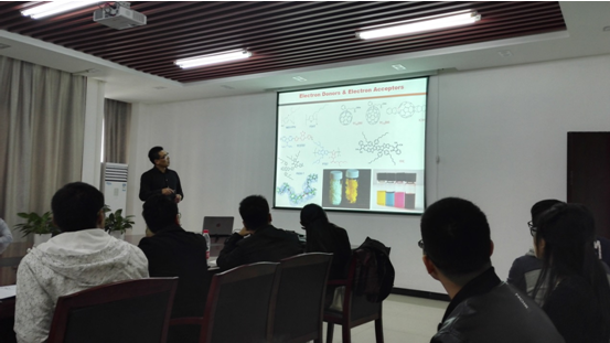 王涛教授的讲座从世界能源的来源现状入手,从身边的电能供给和需求变化中分析了将来能源的发展趋势,指出太阳能的重要性;讲座PPT全程采用英语书写,并配合大量图片和立体3D图像,形象展示了太阳能电池材料的光电转换原理,结合王涛教授最近的研究成果,详细介绍了当前的光电聚合物的合成方法和新的制备工艺。报告结束后,王涛教授与到场的研究生围绕报告中的相关内容进行了互动交流,并介绍了德国、英国等欧洲国家的电力发展使用情况,同时鼓励大家抓住研究生期间学习的时间和机会,努力提升自己的各方面能力。整场报告内容丰富,深入浅出,师生获益匪浅。