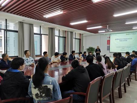 来访期间,朱申敏教授为公司相关师生做了题为《刺激响应光子晶体的仿生制备及特性》的学术报告,报告会由材料公司经理江学良主持。