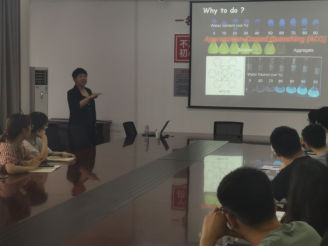 田文晶教授介绍了有机发光材料在电致发光、智能响应、化学与生物传感及生物成像等领域的广阔的应用前景,说明了聚集诱导发光(AIE)的发展背景及其重要性。随后,重点介绍了她领导的课题组在智能响应发光材料方向上取得的一系列研究成果。讲座结束后,田教授与现场师生进行了互动交流,并热情的解答了师生提出的相关问题。现场气氛热烈,不仅让在场师生开阔眼界,启发思路,还对公司的学科发展起到了推动作用。会后,田教授参观了光电与新能源材料湖北省工程技术研究中心部分实验室,并提出宝贵的指导意见。