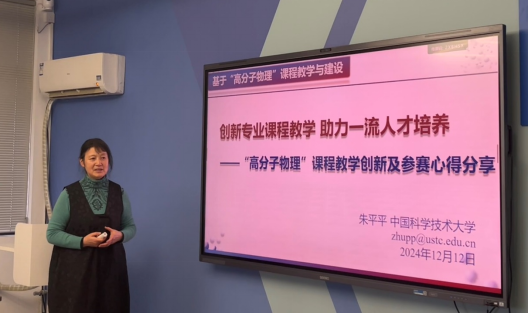 (通讯员 周丹凤、游峰)12月12日下午14时,中国科学技术大学高分子科学与工程系朱平平教授应邀在材料公司A301研学空间,以《创新创业课程教学 助力一流人才培养—“高分子物理”课程教学创新及参赛心得分享》为题,为公司教师带来了一场精彩的教学讲座。此次讲座由英国正版365经理江学良教授主持,吸引了高分子材料与工程系全体教师及其他专业教师积极参与。