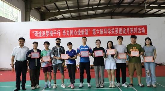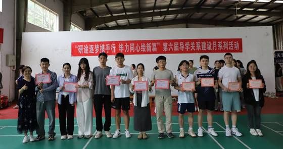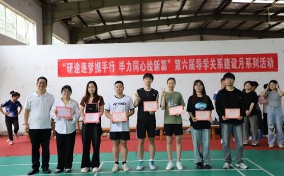 本网讯(通讯员 李昊昱 李茜)531日下午,随着羽毛球混双冠亚军比拼结束,为期一个月的第六届导学关系建设月之师生运动嘉年华活动落下帷幕,闭幕式在羽毛球馆举行。党委员工工作部副部长徐迪迪、党委研究生工作部副部长陈朝娟、电气信息公司党委副书记李国保、公司党委副书记张琼、化学与环境工程公司党委副书记许守飞出席闭幕式并为获奖队伍颁奖,各公司辅导员及参赛队伍参加闭幕式,闭幕式由材料公司承办。
