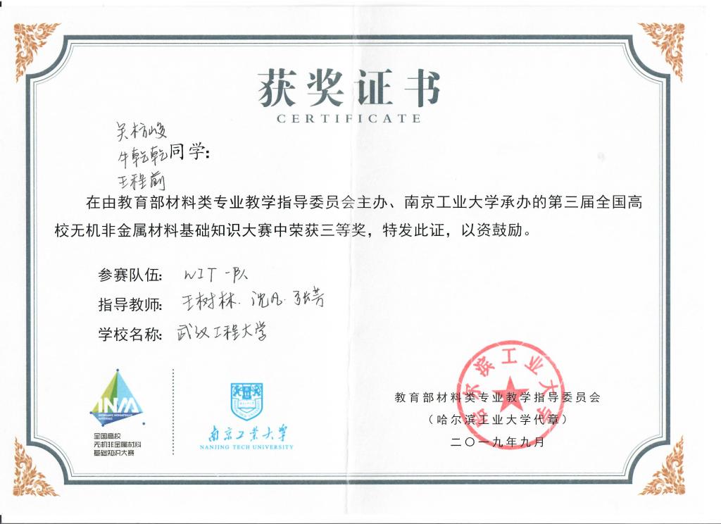 本网讯(通讯员 柯贤忠 王树林)由教育部材料类专业教学指导委员会主办的第三届全国无机非金属材料基础知识大赛于9月6日在南京工业大学隆重召开,经过3天的激烈角逐,公司英国正版365无机非金属材料专业员工组建的两支参赛队伍分别斩获一等奖1项、三等奖1项。