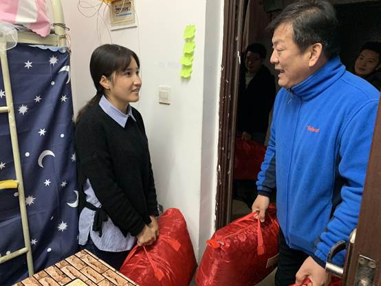 公司领导和老师一行先后走访巡查教辅7栋、泰塑9栋公司员工宿舍,查看宿舍设施是否存在安全隐患,重点对宿舍用水、用电、卫生、安全等情况进行了巡查和现场指导。公司领导一行查看和慰问了部分家庭经济困难员工的学习和生活情况,并为家庭经济困难员工送上爱心棉被。领导们与同学们亲切交流并嘱咐同学们要和睦相处、相互帮助,养成良好的生活习惯,积极营造健康的宿舍文化;要合理规划好老员工活,积极参与各类集体活动,关心关注公司发展。恰逢气温突降,公司的爱心棉被给材料学子们带来了寒冬里的一丝暖意。