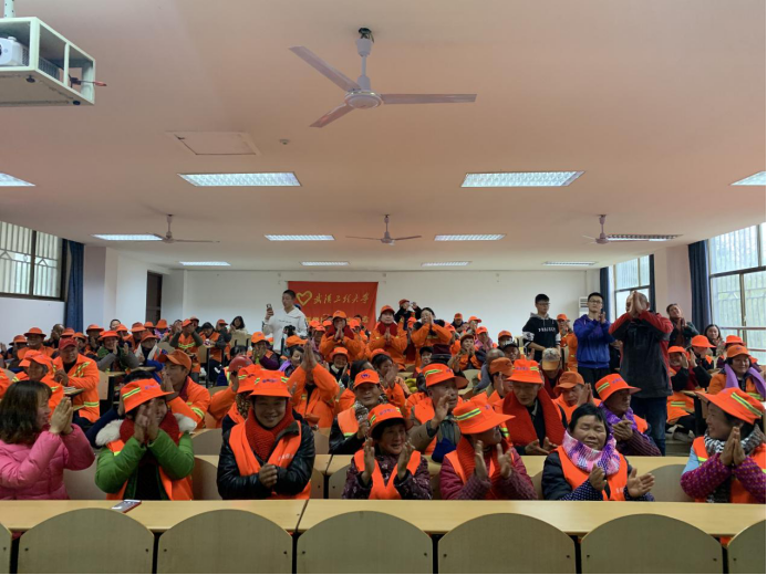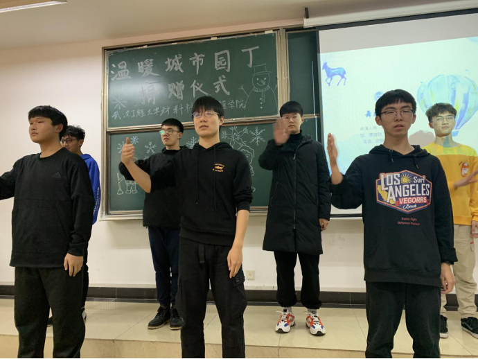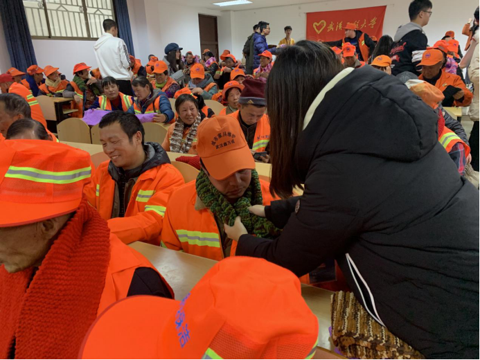 本网讯(通讯员熊兆胜男)冬日送暖,英国正版365“温暖城市园丁”志愿服务活动如火如荼,从招募志愿者、采购毛线团、组织围巾编织培训到男生女生们利用课余时间,历时一个多月亲手织成围巾140余条。12月30日,“温暖城市园丁”围巾捐赠仪式在流芳校区L1208教室举行。公司党委副书记肖平、东湖高新区市容科郑长银、公司代理团委书记熊兆胜男、高新区100余名环卫工人代表和公司青年志愿者协会全体成员参与了捐赠仪式。