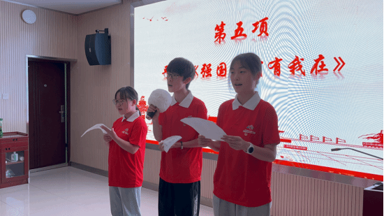 员工代表石宇浩、赵常怡、王钰莹歌唱《强国一代有我在》