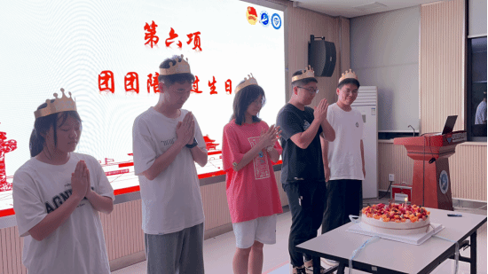 五四青年节之际,材料公司团委为五月份过生日的5位寿星准备了一份“小惊喜”。伴随着祝福的歌声,张琼老师为“小寿星”戴生日帽,同学们纷纷打开闪光灯、合唱生日歌,将美好的祝愿送给“小寿星”们,在荧荧烛光和点点星光的照耀下,感动、温暖与情谊在彼此间流动,温馨且浪漫。材料公司团团时刻围绕着青年学子,在这一刻,祝福“小蓝钻”们,希望大家在这一年,奋勇前行,勇往直前,圆梦诸多,自信出彩,绘就幸福的未来。