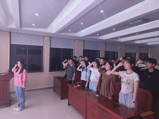 活动伊始,全体同学奏唱共青团团歌,嘹亮的歌声激起了同学们心中爱国敬团的火焰。在团干热孜瓦古力的带领下,团员青年们举起右拳重温入团誓词,他们神情庄重、声音洪亮,展现出青年应有的激情和光荣。同时,在场的不少同学也表达自己感恩生在国旗下,长在春风里,要扎扎实实练真功夫,永葆“闯”的精神,坚定为共产主义奋斗终身的理想信念,共同谱写新时代之下的青春之歌。