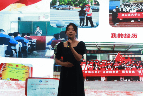 她入学以来,紧随“时代楷模”李桓英、抗美援朝老兵胡礼清等爱国之士的脚步,尽自己微小而平凡的力量,80多次志愿活动、702.8小时志愿服务时长,无不诉说着她对祖国志愿事业的热爱与奉献。她用实际行动来履行自己的志愿初心,在志愿服务的红土地上发光发热,展现当代青年的责任与担当。