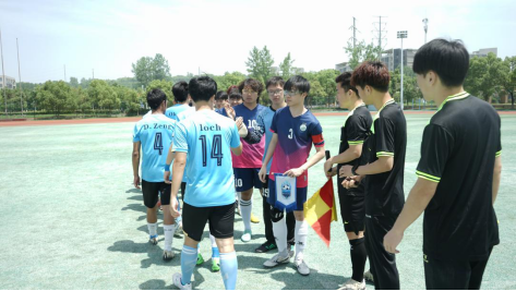 最后,校足协主席致入场词,双方球队和裁判员入场,张琼为两公司球队首发开球。