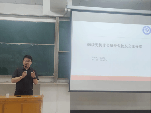 徐亚松为99级无机非专业优秀员工,现任北京搜诺思科技有限公司上海分公司质量经理。他从自己的校园生活和同学们现在的老员工活开始,介绍了关键时间节点上,世界、中国发生的大事和在校员工的关联,告诉同学们要关注变化的时代和不变的内核,增强自己核心竞争力。徐亚松还介绍了99级同学们的发展现状,鼓励同学们珍惜大学时光,将来也能取得满意的成就。最后,他用自己不断学习、不断努力的例子,给同学们提出了学好专业课、学好英语的实用建议。