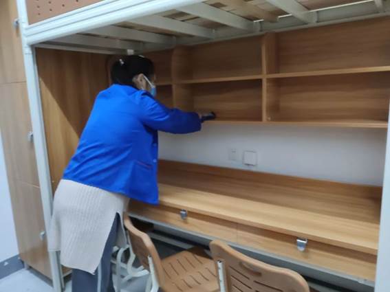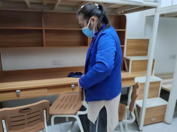 “我是在在2月12日下午两点,接到了物业主任的电话,下午四点要去长江职业技术公司帮忙打扫楼栋宿舍的卫生,进行防疫支援,为即将来住宿的病人提供良好的住宿环境。我马上就答应了,但是其实那个时候我一直生着病,身体不是很舒服,只是想着能做一点什么,硬撑着过去帮忙了。”