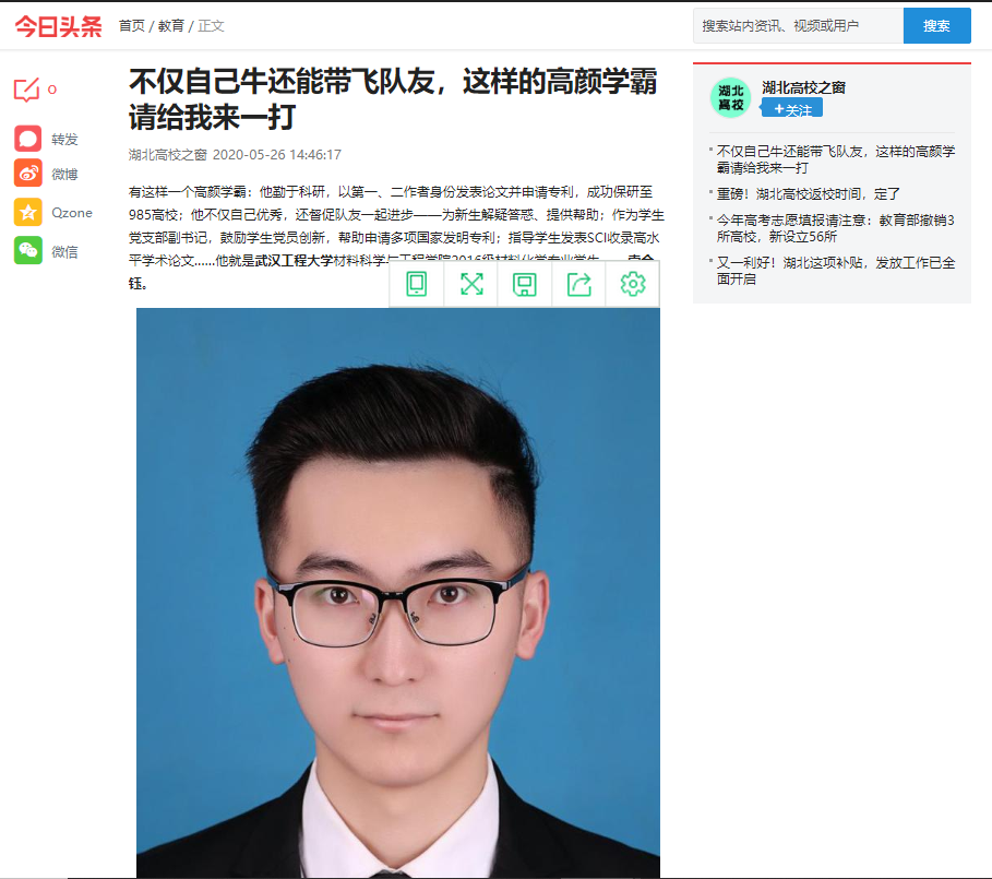 有这样一个高颜学霸:他勤于科研,以第一、二作者身份发表论文并申请专利,成功保研至985高校;他不仅自己优秀,还督促队友一起进步——为新生解疑答惑、提供帮助;作为员工党支部副书记,鼓励员工党员创新,帮助申请多项国家发明专利;指导员工发表SCI收录高水平学术论文……他就是365英国上市英国正版3652016级材料化学专业员工——孛金钰。