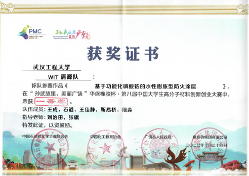 受疫情影响,本届大赛决赛采用线上答辩方式进行,公司2支入围决赛的队伍突出项目特色、叙述简洁明晰、逻辑清楚、表现突出,获得评审专家的一致好评,充分展现出了公司学子良好的精神风貌。此次赛事中,由刘治田教授指导的“WIT清源队”荣获一等奖,是公司历年来在此项赛事中取得的最好成绩。刘治田教授团队十分重视员工创新创业教育,落实“大众创新、万众创业”理念,积极为员工提供科学研究平台,鼓励和指导员工参与科技创新,所指导的员工团队连续六届在此项赛事中斩获二等及以上奖项。
