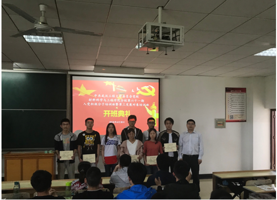 随后,2016级包装材料班李曾琪同学作为第60期党校培训班优秀学员代表发言,分享了参加党校学习以来心得体会。2017级材料10班丁荣祥同学作为本期党校学员代表发言,从思想、学习、工作三个方面谈了作为一名入党积极分子如何在广大同学中间模范践行、率先垂范。2016级英语+材料化学班彭宇霄同学代表本次发展对象,汇报了如何从思想和行动上积极向党组织靠拢。