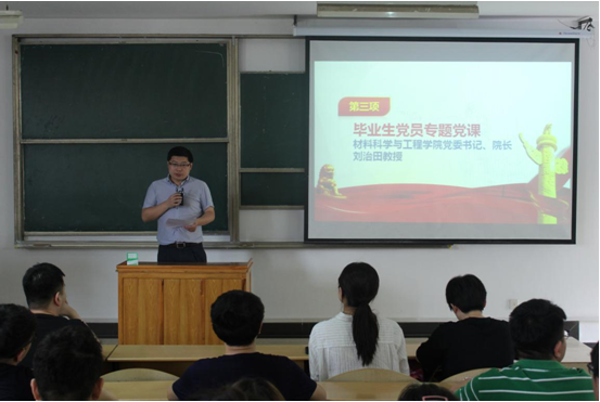会上,党委书记、经理刘治田为全体毕业生党员讲授专题党课,刘书记代表公司党委对全体党员同学在校期间为公司和公司发展各项事业所做的贡献表示诚挚的感谢,指出在座的同学们是同龄人的道德楷模和行动表率,在走出校门以后要做祖国建设的先锋队和排头兵。他对毕业生党员们提出了三点希望:一是,坚持把建设中国特色社会主义伟大事业作为人生理想和不断追求的目标。二是,坚持把尚学、勤学、乐学、善学作为终身追求,继续争做学习的表率。三是,坚持把报效祖国、服务人民作为根本使命,努力成为实践的先锋。