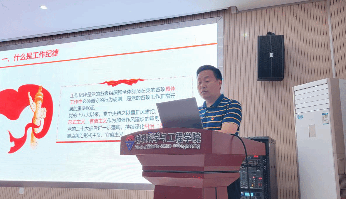 (通讯员 田明华)5月30日下午,材料公司在A326报告厅举行党纪学习教育党委委员讲纪律党课。公司党委委员,教工和员工党支部书记以及授课党委委员所联系的员工党支部党员参加学习,会议由公司经理江学良主持。