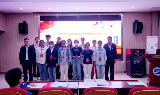 会上宣读了《关于成立材料公司党建事务服务中心的决定》,江学良为中心成员佩戴工作证,并合影留念。