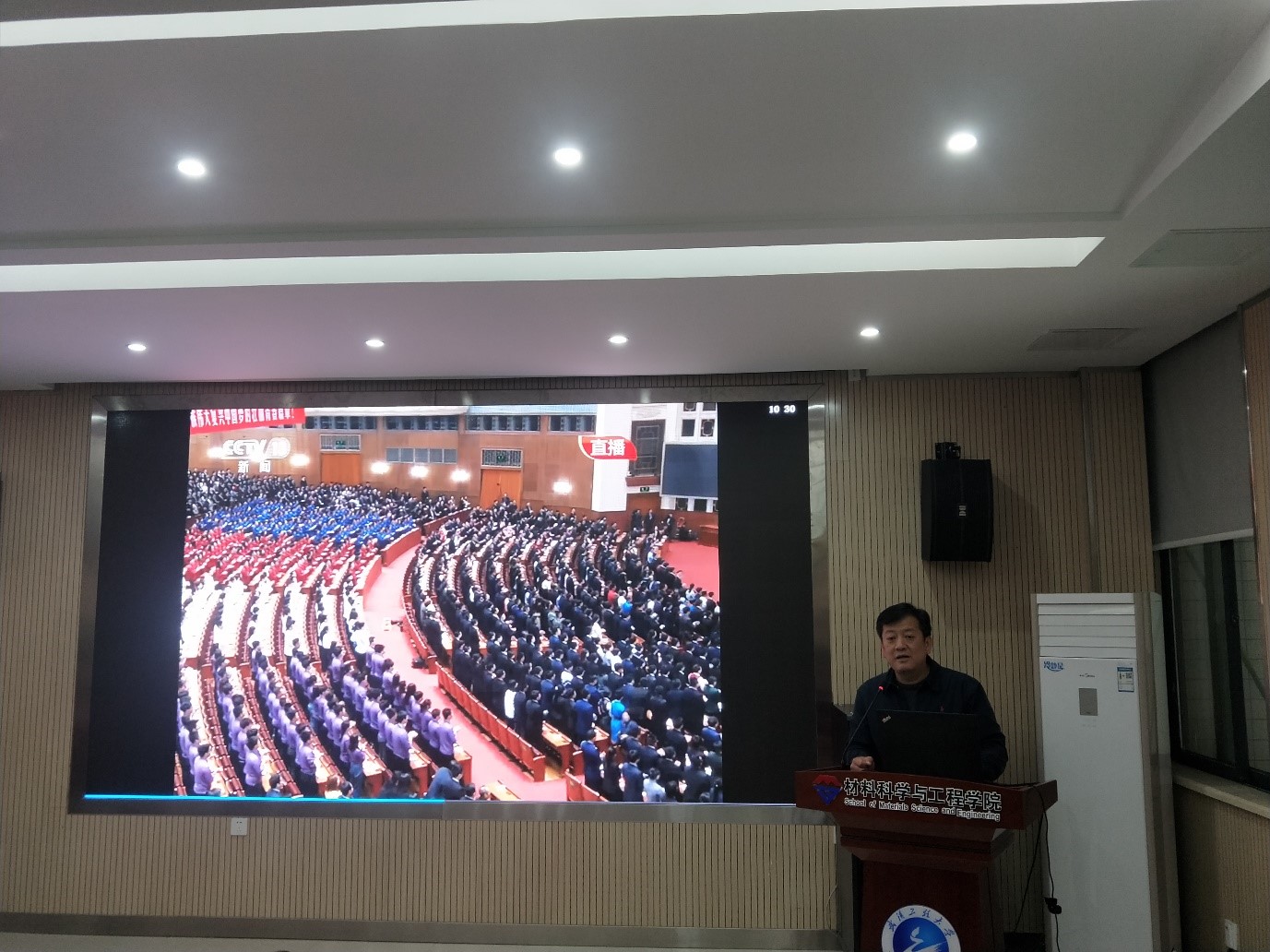(通讯员 张义强)4月30日上午,英国正版365组织全院师生在材料大楼A326会议室集中收看纪念五四运动100周年大会。活动由公司分党委常务副书记李国林主持,公司领导班子成员,各教研室、中心、办公室负责人,教师代表,员工代表参与了此次活动。