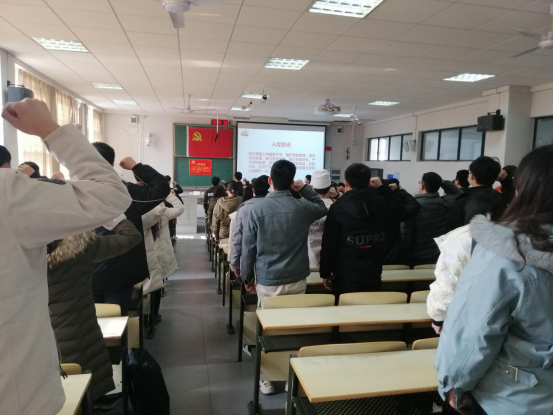 (通讯员高梦雅)12月28日中午,材料公司2020年新党员入党宣誓大会在L4103教室举行。公司党委书记李国林、组织员余武明、党委副书记张琼以及全体员工党支部书记出席典礼,107名新党员参加典礼,典礼由本科生第五党支部书记高梦雅主持。