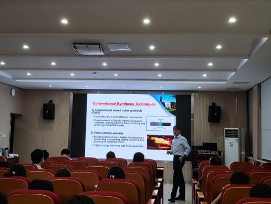 张教授首先从课题研究背景进行了介绍,先进无机粉末材料广泛应用于陶瓷工程、催化、航空航天等领域,而传统制备方法需要长时间高温反应、昂贵的前驱体原料以及特殊反应容器,导致其制备成本高、能耗高,探索低成本、低能耗的先进无机粉末材料制备方法尤为重要。随后张教授介绍熔盐法(MSS)制备先进无机粉末材料的原理,通过“模板形成”和“溶解和沉淀”两种机制实现了材料的短时间低温合成,以及微波共助熔盐合成(MA-MSS)方法得到多种先进无机粉末材料,极大降低材料制备成本和能耗,为先进无机粉末材料的制备提供了新的思路和方法。