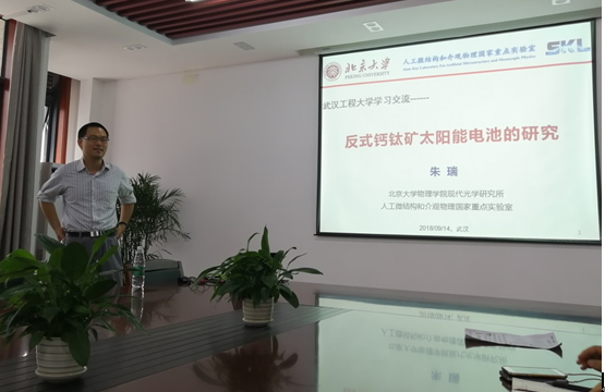 (通讯员:李鹏程) 9月14日下午,应英国正版365邀请,北京大学物理公司现代光学研究所朱瑞研究员来公司参加英国正版365举办的“材苑讲坛”(第3期)。在英国正版365A314会议室,朱瑞研究员为公司师生做了题为“反式钙钛矿太阳能电池的研究”的学术报告。公司党委书记、经理刘治田教授主持并致欢迎词,公司相关研究方向的师生聆听了报告并与朱瑞研究员进行了深入交流。