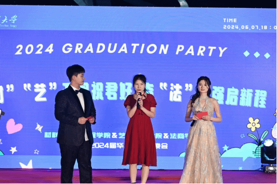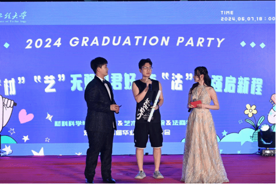 6月7日晚,材料公司、艺术公司、法商公司联合举办的“‘材’‘艺’无双祝君好,奋‘法’图强启新程”2024届毕业生师生联欢晚会在知博广场圆满举办,公司党委学工部部长严敏,公司党委研工部副部长陈朝娟,校团委副书记邓欢、挂职书记王祥礼,材料公司经理江学良、党委副书记张琼,艺术公司党委副书记王超,法商公司(知识产权公司)党委副书记孙勇、副经理付书科以及三个公司的毕业班班主任代表、导师代表,全体辅导员,1000余名本硕毕业生参加了本次活动,活动现场,流光溢彩,欢声笑语,其乐融融,氛围热烈。