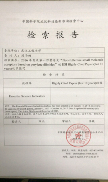 刘治田教授课题组重点研究苝酰亚胺类受体材料的结构与性能之间的关系,努力提高苝酰亚胺类受体材料的光伏性能,已经取得了一些重要进展,2016年以来在SCI一区期刊Journal of Materials Chemistry A(IF:8.867),ACS Applied Materials & Interfaces(IF:7.504),ChemSusChem(IF:7.226),Macromolecules(IF:5.835),已发表相关研究论文4篇,申请中国发明专利10余项。