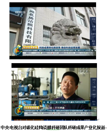 以徐慢教授为负责人的碳化硅陶瓷膜科研团队科研成果成功实行产业化,建成湖北迪洁膜科技有限责任公司,该公司创业团队曾被中央电视台财经频道、新华社、人民日报等主流媒体多次报道。