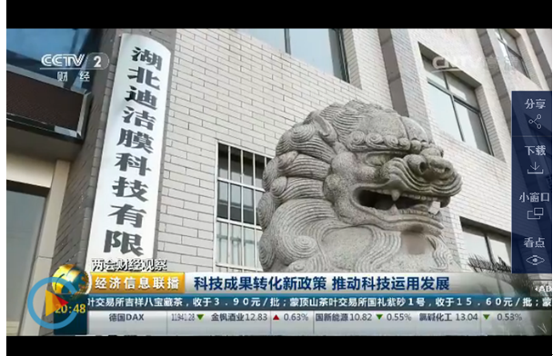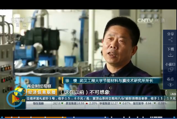 3月14日晚中央电视台《经济信息联播》栏目播出公司碳化硅陶瓷膜团队科研成果转化专题。