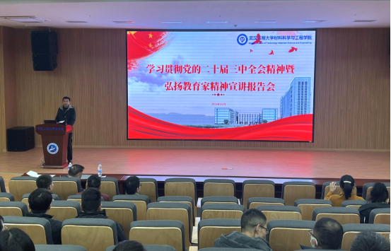 (通讯员 刘虎森)11月28日,为深入学习贯彻党的二十届三中全会精神,大力弘扬教育家精神,材料公司在图书馆二楼报告厅特邀“全国优秀教师”、校“十佳师德标兵”袁华教授作专题报告会。公司领导班子成员出席,全体教职工参会,会议由公司党委副书记马科主持。