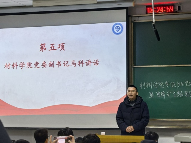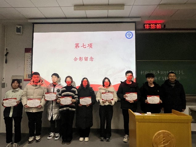 在团队成员分享结束后,材料公司党委副书记马科发表了讲话。他首先对实践团成员在寒假中的辛勤付出表示肯定,称赞他们在实践中“长见识、增才干”,展现了材料公司学子的风采。接着,他以“学雷锋纪念日”为契机,鼓励同学们将社会实践与志愿服务相结合,勇于承担社会责任,深入社会基层,在实践中磨练成长。马书记还向同学们提出了三点希望:第一,传承“雷锋”精神,成为新时代的追光者;第二,践行“知行合一”,做实干担当的践行者;第三,将奉献、互助、友爱、进步的精神融入到日常生活中,用实际行动诠释“雷锋精神”。马书记的讲话,不仅是对同学们的鼓励,更是对“雷锋精神”的深刻解读,让在场的每一位同学都深受启发。最后,马科书记为各实践团获奖成员代表颁发了荣誉证书,并与他们合影留念。