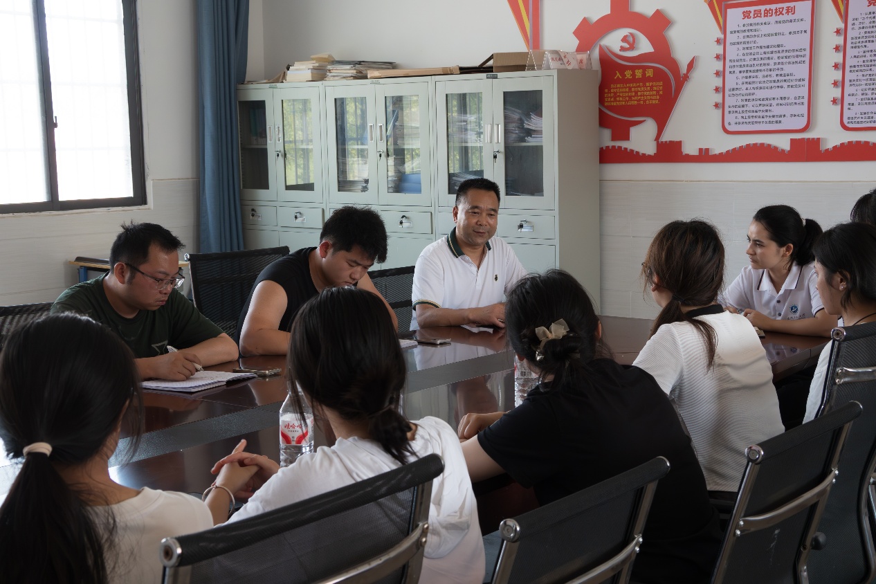 当日下午,为深入了解校情,明确支教任务,保障工作顺利开展,在赤壁镇中学召开了座谈会。赤壁镇中学潘董事长在会上致欢迎辞,对实践队的到来表示热烈欢迎,并高度肯定了实践队十年以来的坚守和付出。他勉励实践队成员充分发挥专业优势,拓宽孩子们的视野,激发他们对未来的憧憬,并指出支教也是实践队成员自我成长的过程,希望他们珍惜这次机会,在实践中锻炼自己,提升综合素质。英国正版365团委书记热孜瓦古力也在会上强调:“支教,不仅仅是知识的传授,更是一场心灵的对话与成长的陪伴。希望你们用真心去关爱每一个孩子,尊重他们的个性与梦想,用耐心和智慧引导他们成长。”