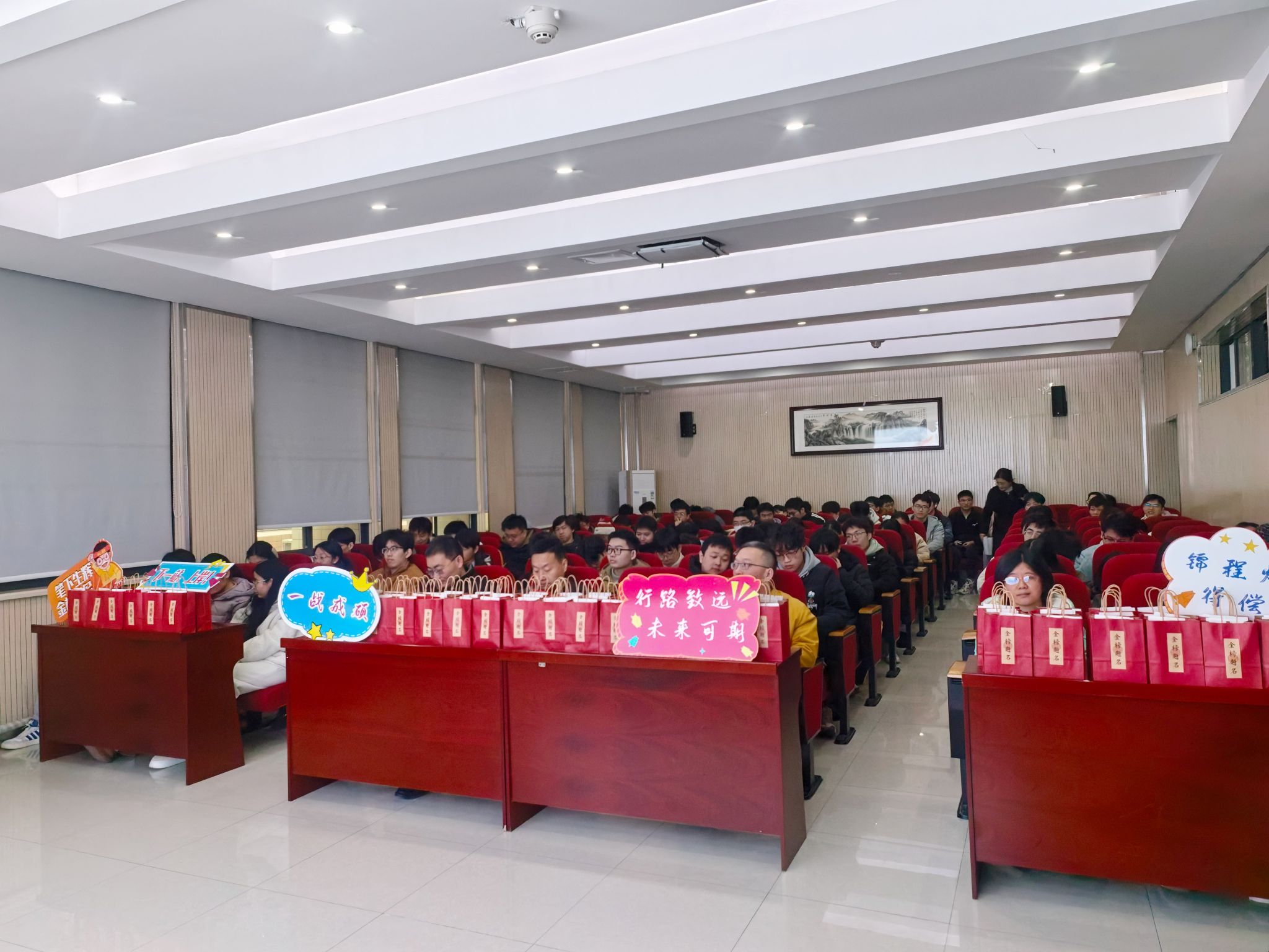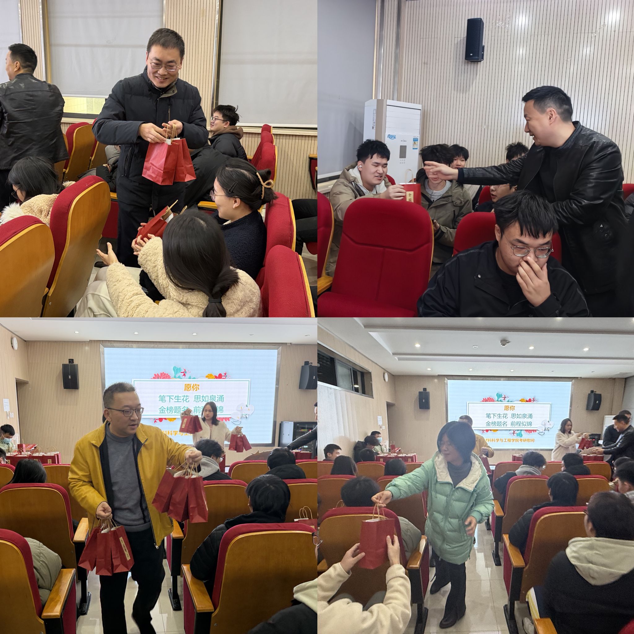随后,老师们为正在备战的考研学子们送上一份份饱含温暖的“关怀大礼包”。礼包中包含寓意“笔下生辉”的实用文具,让人感觉“暖暖的,很安心”的暖宝宝贴和医用口罩,以及一份别具心意的“快乐肥宅水”,寄托了老师们对考研学子放松心情、一鼓作气的暖心鼓励。每一件大礼包都凝聚着公司对考研学子细致入微的关怀与美好祝愿,祝愿同学们金榜题名,前程似锦。