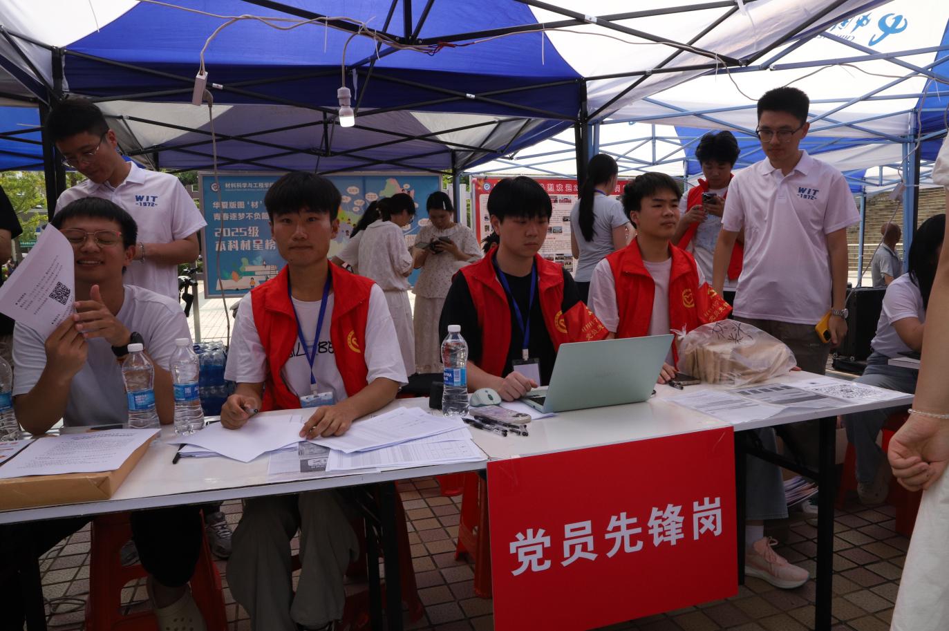 (通讯员:刘虎森)金秋送爽,丹桂飘香,又到一年迎新季。为切实发挥基层党组织战斗堡垒作用与党员先锋模范作用,让2025级新生在踏入校园的第一时间感受到家的温暖,材料公司精心部署、提前谋划,在迎新期间特设“党员先锋岗”,组织全院员工党员、预备党员及入党积极分子组成志愿服务队,以“全方位、零距离、有温度”的服务,为新生开启大学旅程保驾护航。
