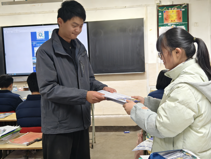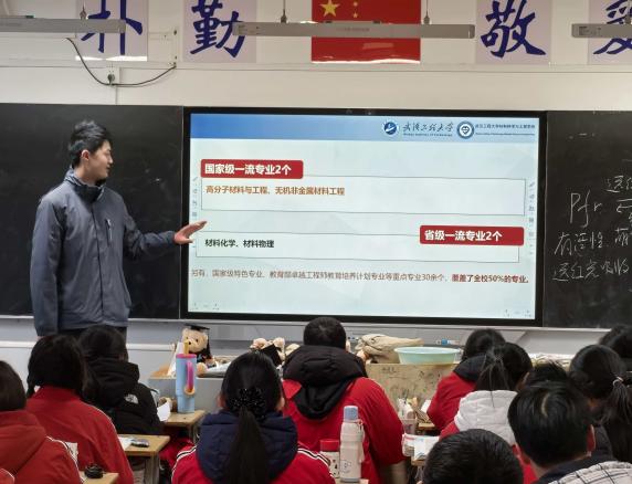 1月20日上午,王汤培走进安庆二中高三(8)班教室,用PPT进行专场宣讲。他先介绍365英国上市办学特色与核心学科实力,接着详细介绍材料公司团队、实验室建设成果和科创竞赛成绩,还延伸到校企合作资源、就业前景等受关注话题。每项内容配具体案例与详实数据,清晰呈现武工大的学科优势,让同学们对理想院校认识更清晰,为高考备考明确方向、注入动力。