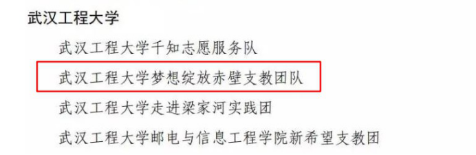 2019年,“梦想绽放”赤壁支教团队继获得校优秀实践团队后,又荣获湖北省社会实践优秀团队荣誉。本次社会实践活动受到人民日报、楚天都市报、赤壁市人民政府等媒体追踪报道。