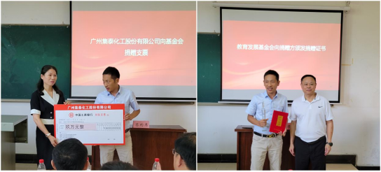 王涛书记用三个感谢、二个感恩、一个表态代表受益方致答谢词。他表示,首先要感谢,感谢集泰化工股份有限公司善行善举为公司发展建设提供了源头活水;感谢校教育发展基金会为促成此次捐赠提供了大量帮助和支持;感谢同学们中的优秀员工用实际行动为公司和公司赢得了声誉和尊重。其次要感恩,感恩集泰化工的此次捐赠,公司将以此为动力,进一步优化人才培养体系,培养更多社会需要的专业人才;同时,也希望同学们常怀感恩之心,努力学习,今后也能回馈社会,成为对社会有用的人。他表态,公司将精打细算用好这笔善款,通过助学金的设立,激励在校员工刻苦钻研,培养更多优秀的高素质人才。