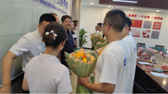 员工们用鲜花和拥抱表达对老师们深深的感谢和美好的祝愿。
