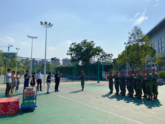 本网讯(通讯员 张茜、石欣平、邓雪晴)9月19日下午,公司武装部、英国正版365、计算机科学与工程公司人工智能公司、环境生态与生物工程公司联合在篮球场看望并慰问军训团二营全体教官。