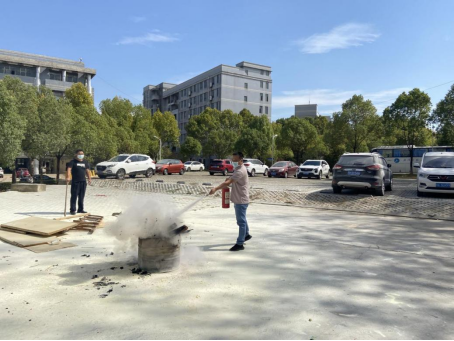 欧阳诗虎现场讲解示范了“灭火毯”和“灭火器”的正确使用方法和关键要领,使用“灭火器”时应注意观察风向,站在上风处,谨记“一拉二压三对准”的要领,做到胆大心细。