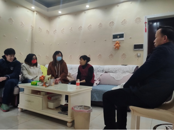 (通讯员丁子夕、芦梦荻)2月8日,公司党委副书记张琼、2020级辅导员丁子夕、2021级辅导员芦梦荻前往蔡甸片区员工家庭开展家访工作。家访队与员工及家长就员工学业情况、寒假实践、新学期规划、生活情况进行了交流攀谈,并鼓励员工积极思考、合理定位、调整身心、以新的精神面貌投入新学期的学习生活中,取得新的进步。