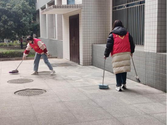 “小蓝钻”们分成3组,以材料公司大楼作为清洁范围,在分发完扫把、抹布、拖把后有序投入到劳动中去。大家各司其职、相互配合,耐心且细致地打扫每一个角落,让公司大楼焕发新颜。