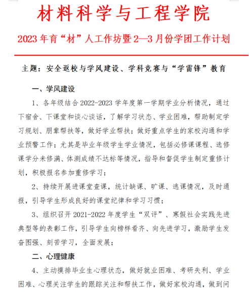 本网讯(通讯员 柯贤忠)新学期伊始,为进一步凝聚公司员工工作队伍力量,科学精心谋划新学期员工工作,有序推进各项工作常态化规范化。2月23日,材料公司召开2023年育“材”人工作坊暨新学期第一次班主任工作例会,公司党委副书记张琼、全体辅导员和班主任参加会议。