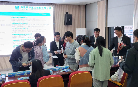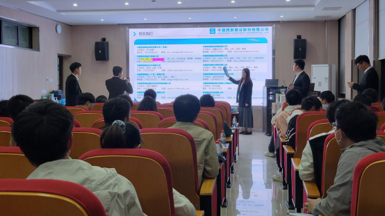招聘会上,中建西部建设湖南,中建西部建设广东,中建商砼等三家单位招聘负责人到场宣讲。企业还安排了2022年入职的学长现场分享入职经历和工作感受,并就薪资待遇、工作时长、食宿等员工关心的话题进行了现场交流。